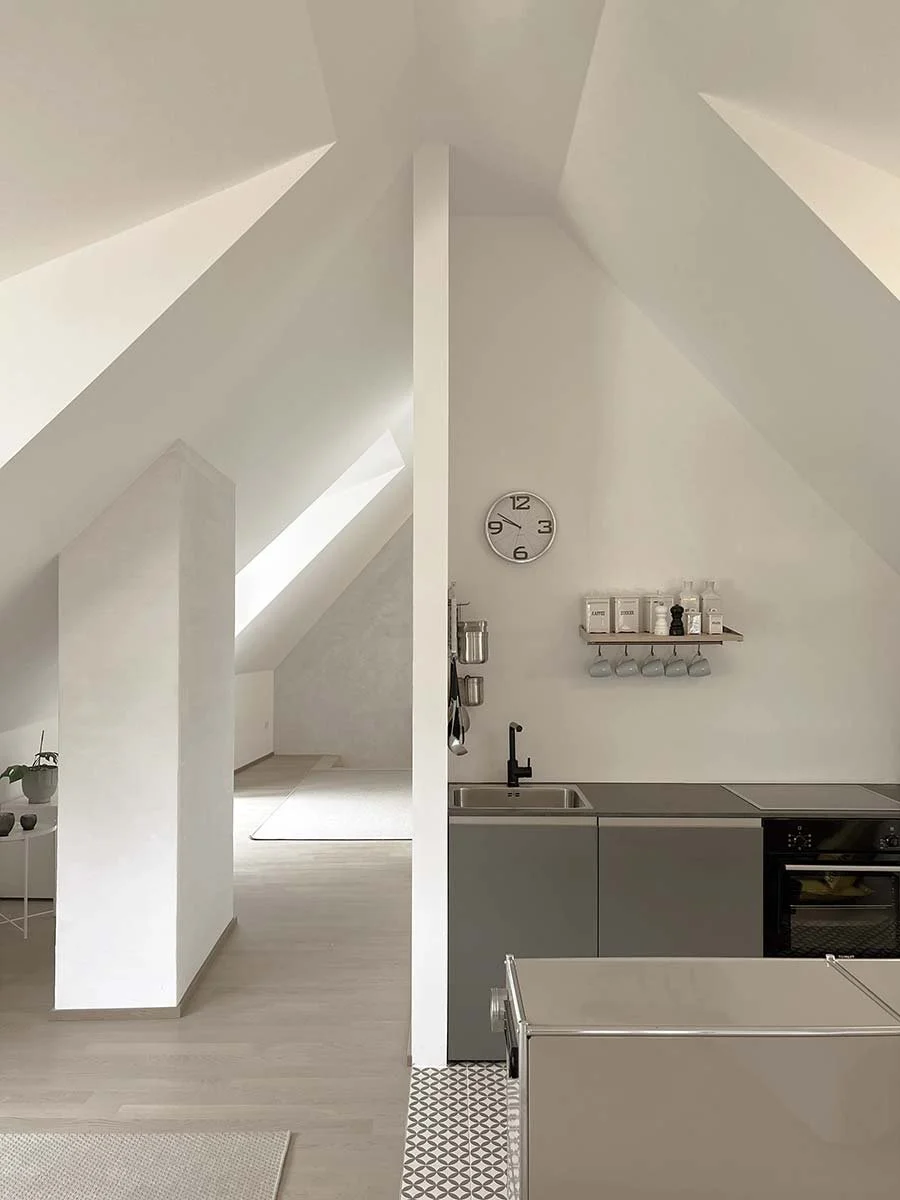 Das Apartment ist als offener Raum gedacht. Wohnen, Schlafen und Verweilen gehen ineinander über.